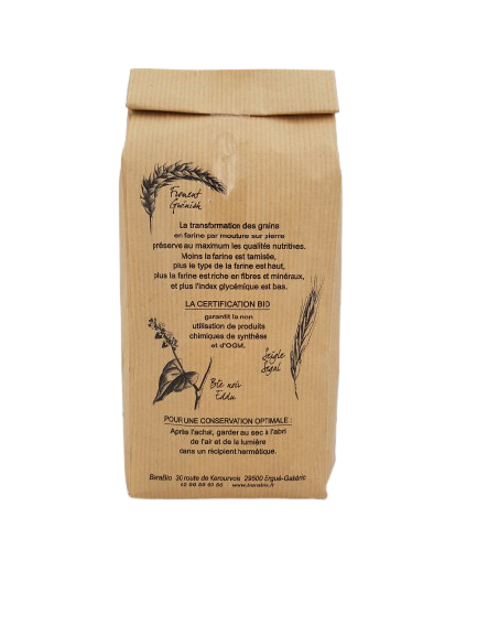 Directement de la meule au sac, elle contient tout le son du grain de froment. Pour votre pain intégral.