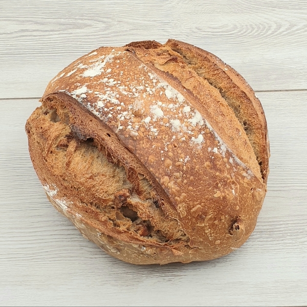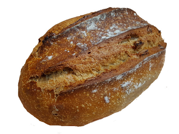 Ingrédients: farine de froment T80 (semi-complète), eau filtrée, levain de froment, noix, sel de Guérande
